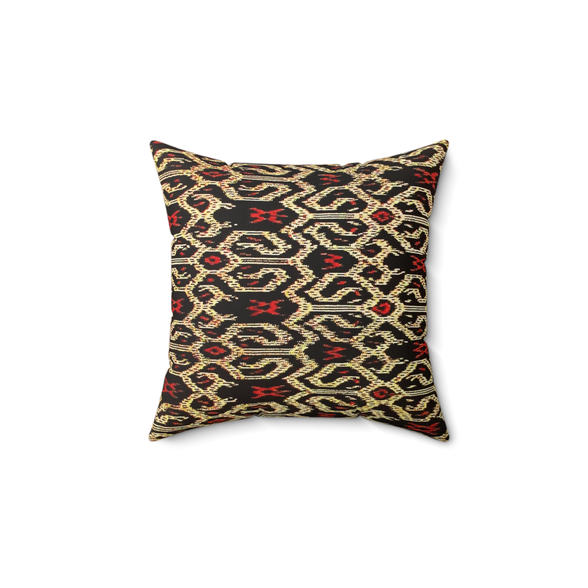 Give your home the feel of Mindanao with this exquisite square pillow featuring a luxurious suede fabric adorned with the mesmerizing T’nalak design by the Tboli tribe in the island of Mindanao, Philippines. Whether you are Mindanaoan or simply appreciate the rich heritage of Filipino tribal weaving, this pillow is a magnificent addition to any Filipino home or living room. The T’nalak design, meticulously crafted by the skilled Tboli weavers, showcases the cultural vibrancy and artistic excellence of the Mindanaoan people. Known as “dream weavers,” the Tboli artisans have poured their dreams and heritage into every thread, creating a stunning ethnic pattern that reflects the unique identity of the Cotabato region. Immerse yourself in the warmth of Filipino tradition as you embrace the symbolic motifs and vibrant colors that tell the story of Mindanao. This pillow not only serves as a beautiful piece of decor but also as a celebration of the rich cultural tapestry that defines the Southern Philippines. Bring home a touch of Mindanao’s artistic legacy with this T’nalak-inspired pillow, where each thread is woven with the dreams and heritage of the Tboli people. Elevate your living space and connect with the soul of Filipino craftsmanship. .: 100% Faux suede cover .: 100% Polyester pillow included .: Double sided print .: Concealed zipper .: Note: Pre-constructed item. Size variance +/- 0.5″