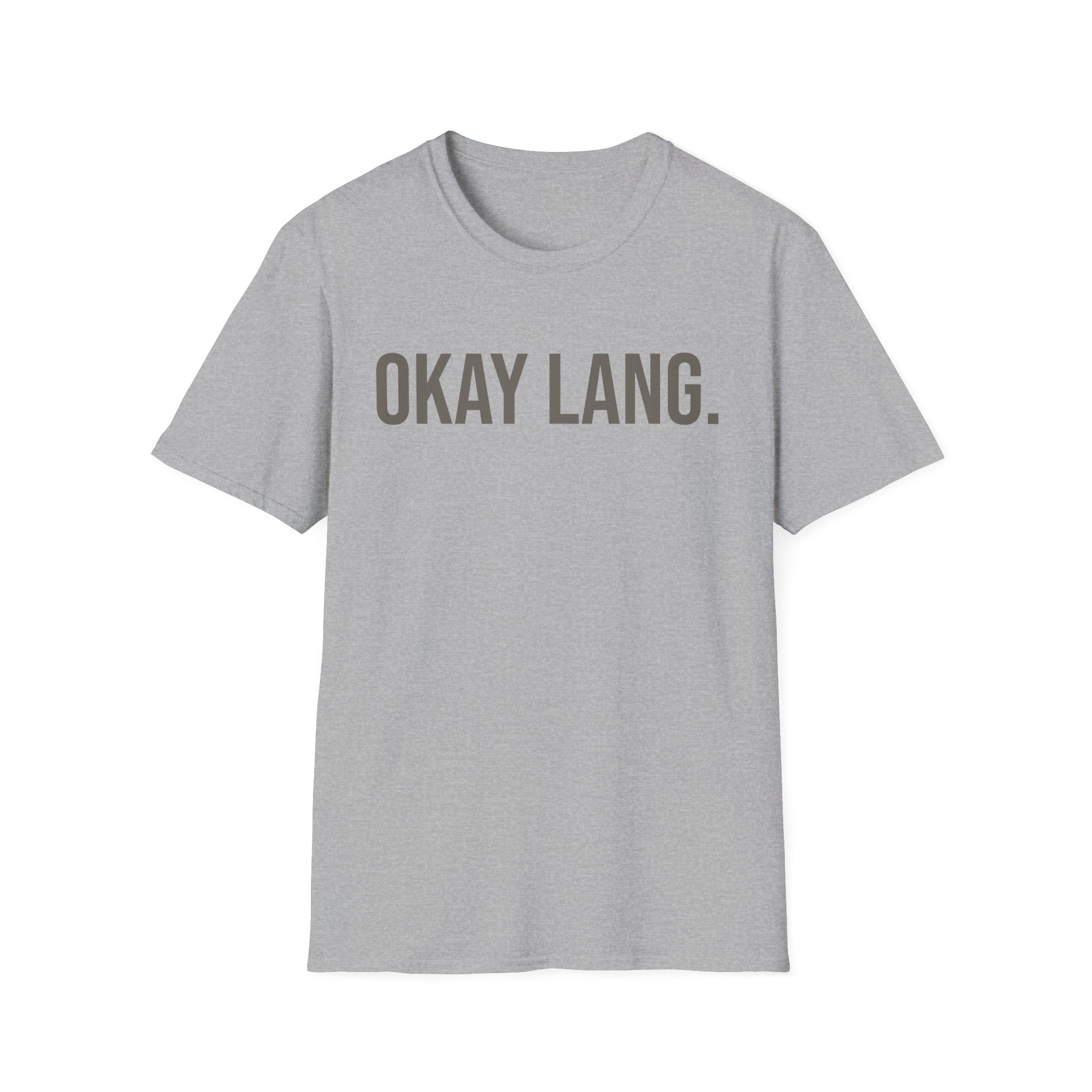 A clean, soft tee that speaks with quiet confidence. This lightweight crew neck lays smooth against the skin and carries the understated “OKAY LANG.” message across the chest in bold, minimalist type. It moves easily from morning coffee runs to late-night hangouts, folding into your everyday rotation without fuss. The fabric has a finely spun, durable feel that holds prints well and keeps its shape after repeated wear. Wear it when you want to shrug off the noise, make a deadpan joke, or simply show up comfort-first.